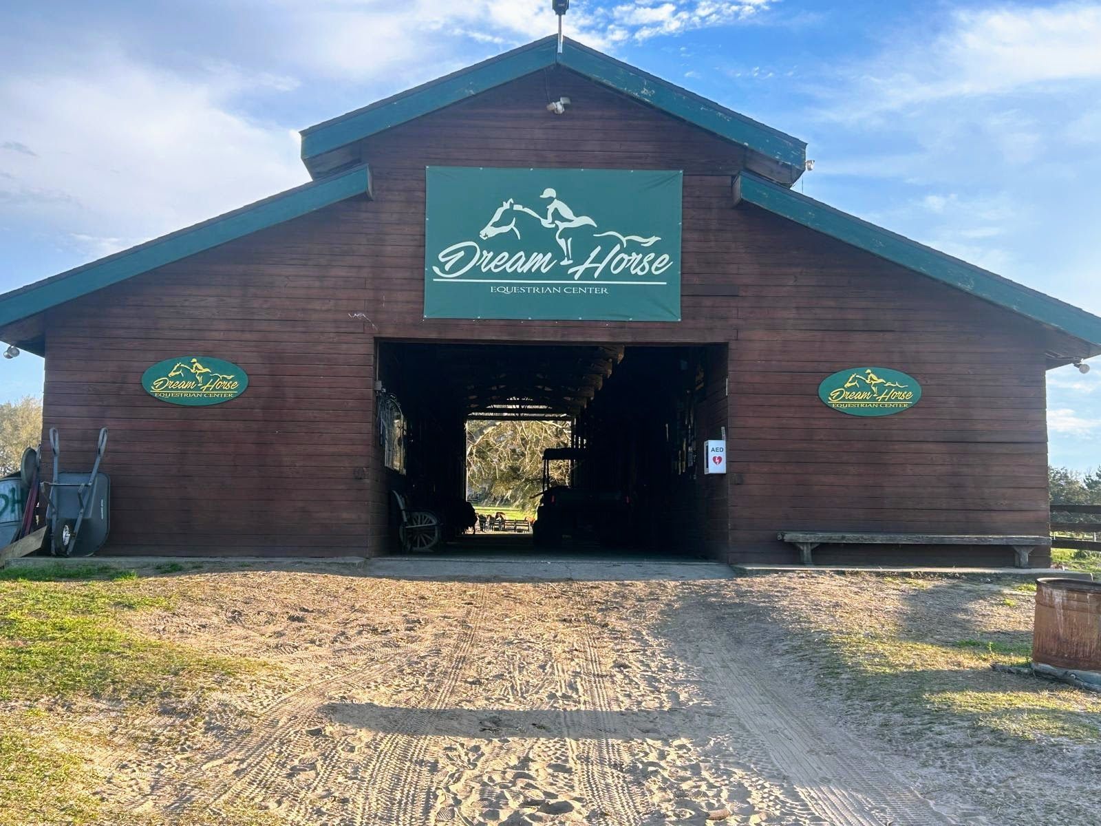 Dream Horse Equestrian Center is a top-caliber facility located on 22 acres in Eustis, FL. We offer all the amenities of first-class boarding with an experienced and dedicated professional staff. The owners live on the property, keeping a watchful eye on the premises. Full board includes stall, daily turnout, morning and evening feed, and T&A hay. We also offer alfalfa blocks, extra T&A and coastal hay rolls for an additional fee dependent on quantity. While the weather is pleasant all the horses are out in the pasture night and day unless the owner specifically requests to have them in their stalls. During the summer heat some horses may spend half the time out and the other half in. We have approx. 4 horses per beautiful, green pasture.